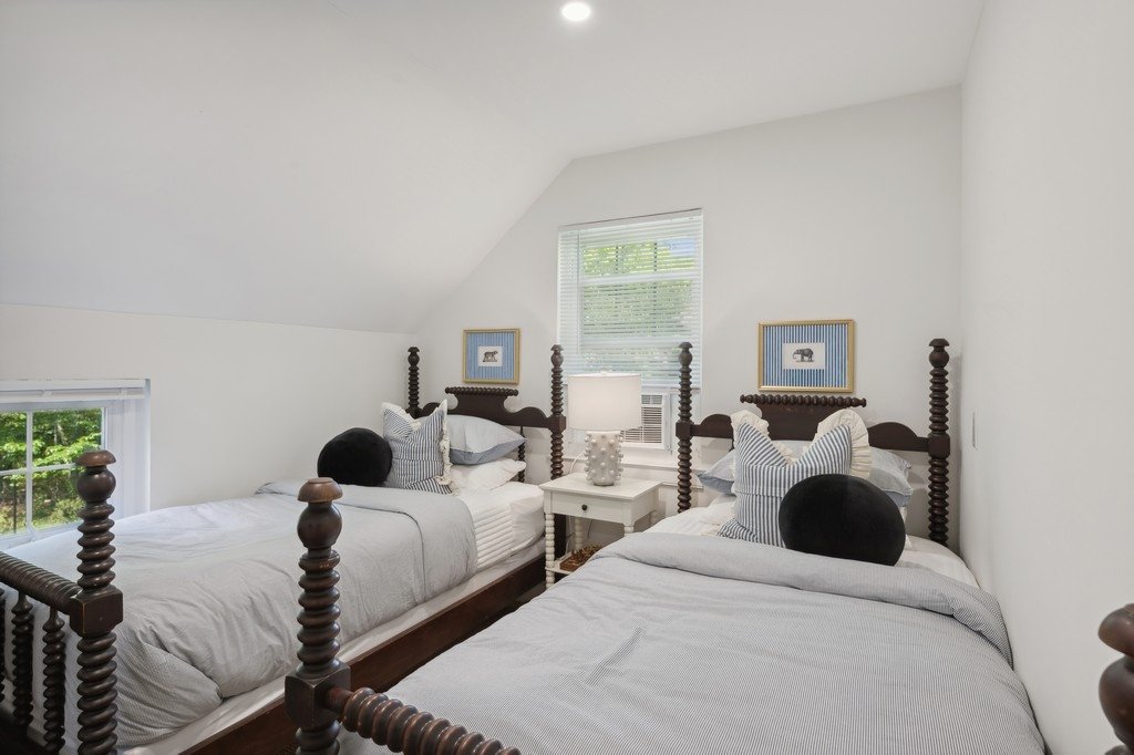 Upstairs, the primary bedroom offers ample space for a king-sized bed, creating a haven of rest and relaxation. The first guest bedroom accommodates a queen bed, while the second guest bedroom is perfectly set up for two twin beds—ideal for family and friends.